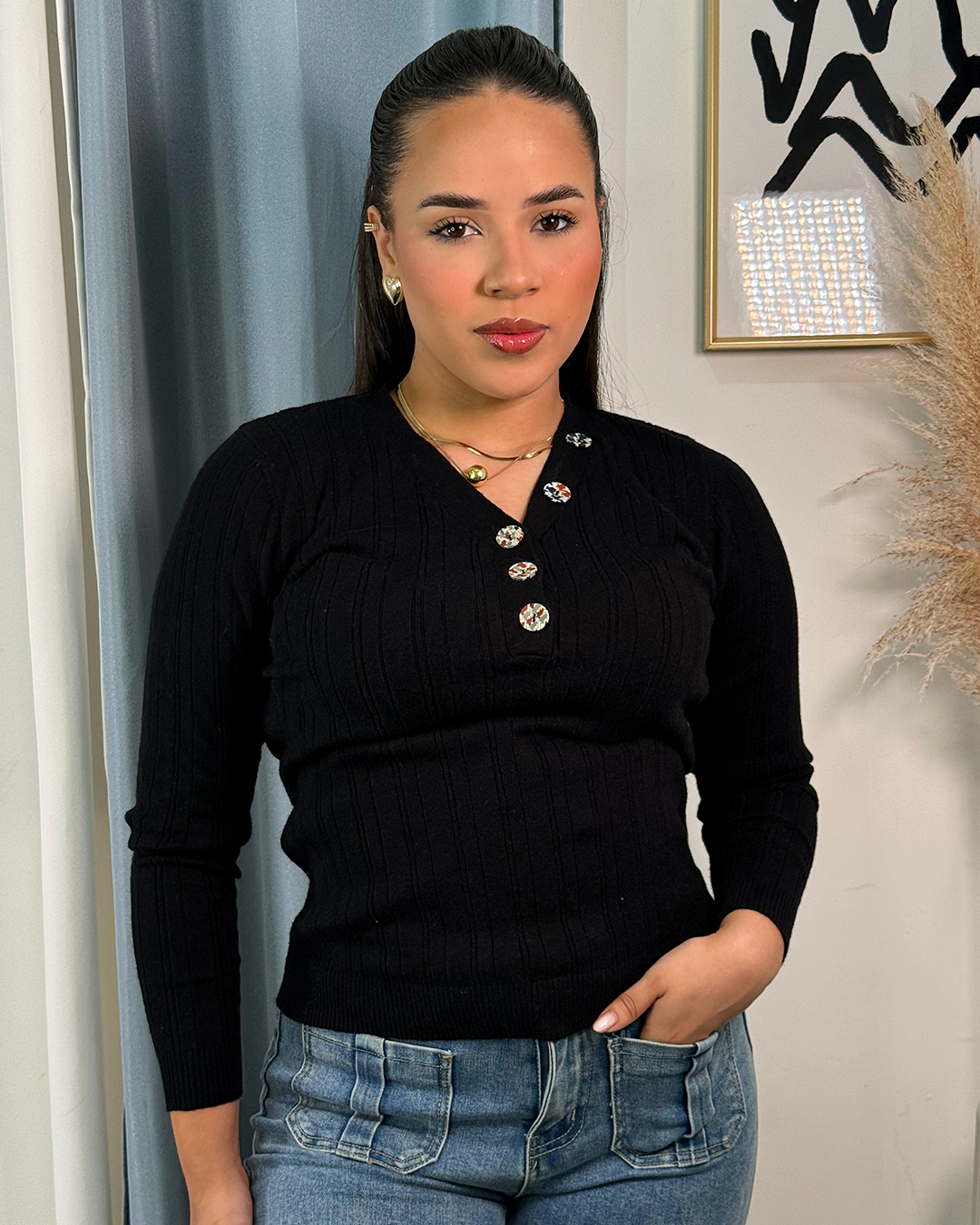 Este suéter con tejido fino ofrece una textura suave y ligera, ideal para mantener la comodidad en climas variables. Su confección detallada proporciona un ajuste elegante que resalta una apariencia pulida sin sacrificar confort. Perfecto para usar tanto en ambientes formales como casuales, combina facilidad de uso con un diseño versátil y sofisticado.