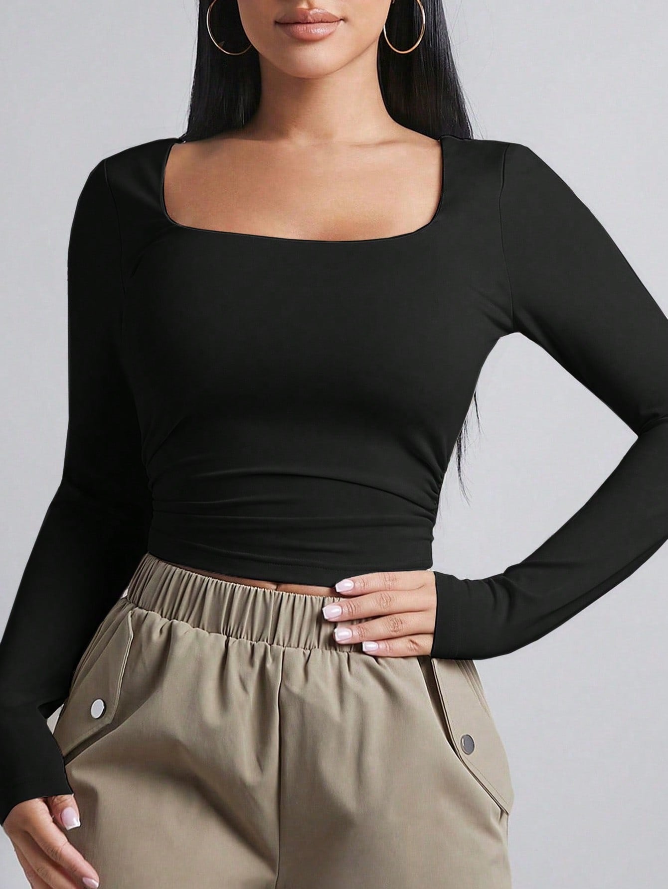 Sueter cuello cuadrado manga larga unicolor