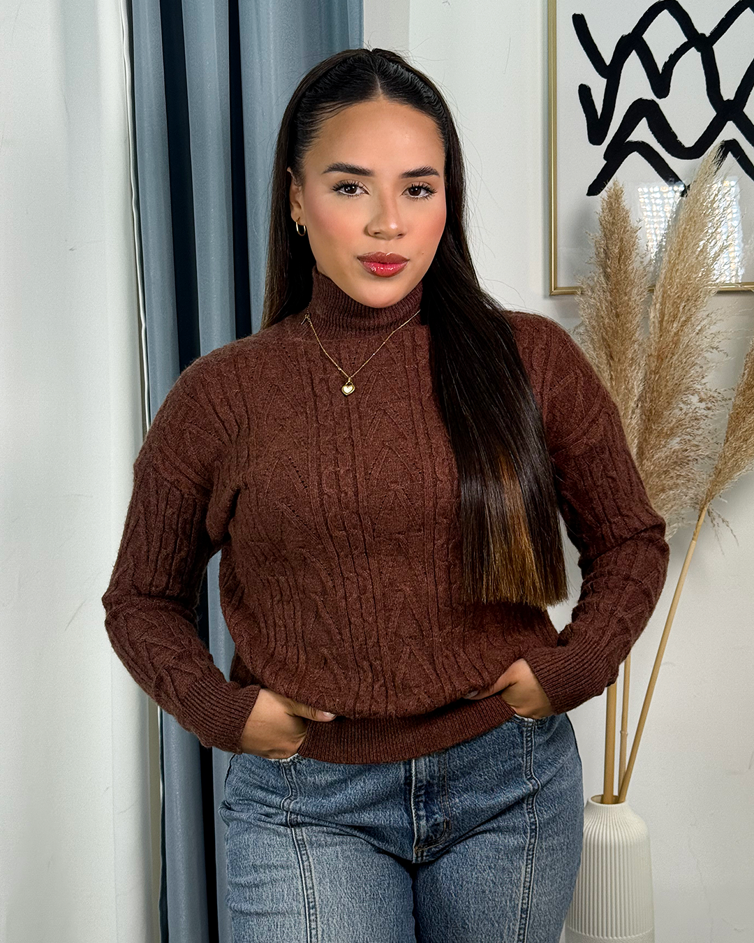 Este suéter jersey holgado destaca por su tejido con patrón detallado, que aporta textura y estilo único. Su corte amplio ofrece comodidad y libertad de movimiento, ideal para quienes buscan una prenda funcional sin sacrificar elegancia. Perfecto para combinar en looks casuales o semi-formales, garantiza versatilidad y un toque sofisticado en cualquier ocasión.