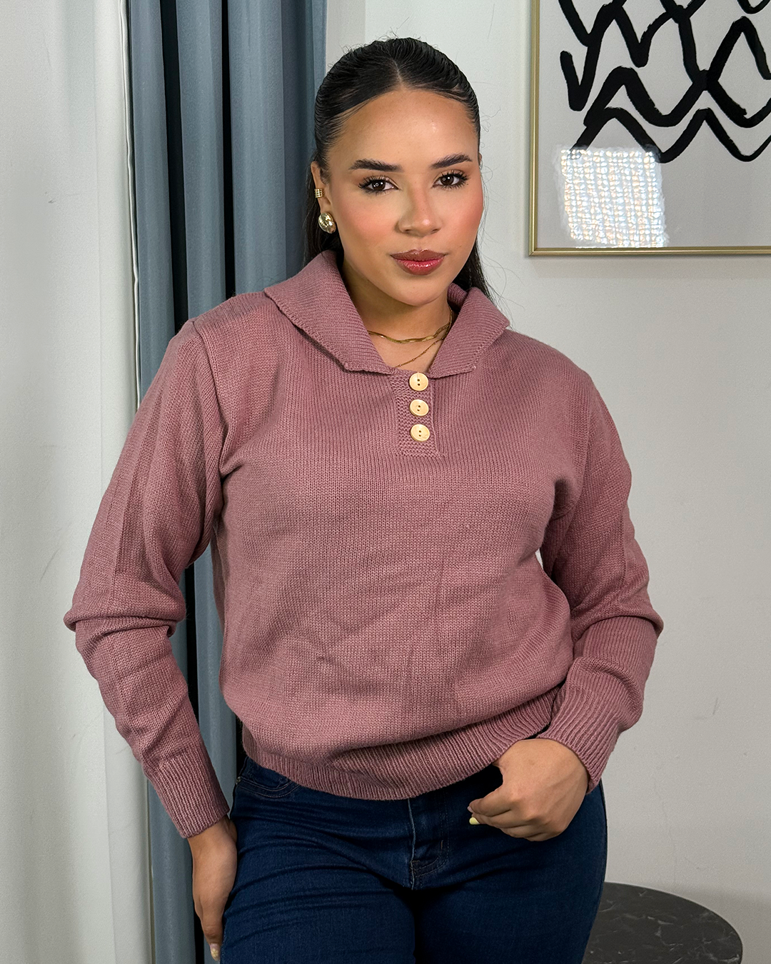 Este suéter tipo jersey presenta un tejido ajustado que realza la figura, combinado con un cuello semi alto que aporta elegancia y confort térmico. Su diseño versátil lo hace ideal para combinar en diferentes estilos, manteniendo una apariencia pulida y profesional en cualquier ocasión. Perfecto para quienes buscan una prenda funcional y moderna.
