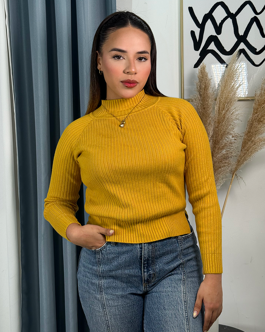 Este suéter jersey de cuello alto unicolor ofrece una combinación perfecta de elegancia y confort. Su tejido suave y ajustado mantiene el calor, ideal para los días frescos, mientras que su diseño minimalista aporta un estilo sofisticado y versátil para cualquier ocasión. Una prenda esencial para tu armario.