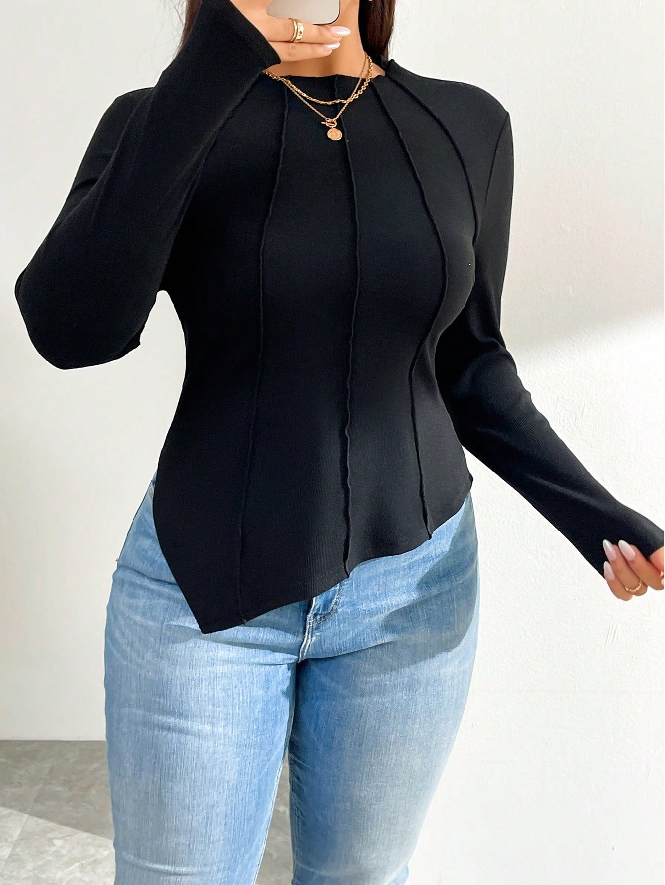 Sueter manga larga con corte asimetrico