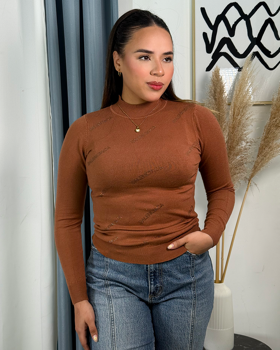 Este suéter tejido ajustado con piedrería combina elegancia y estilo en una prenda única. Su diseño ceñido realza la figura, mientras que los detalles de piedrería aportan un toque sofisticado y brillante, ideal para destacar en cualquier ocasión especial. Perfecto para quienes buscan comodidad sin renunciar a un look llamativo y moderno.