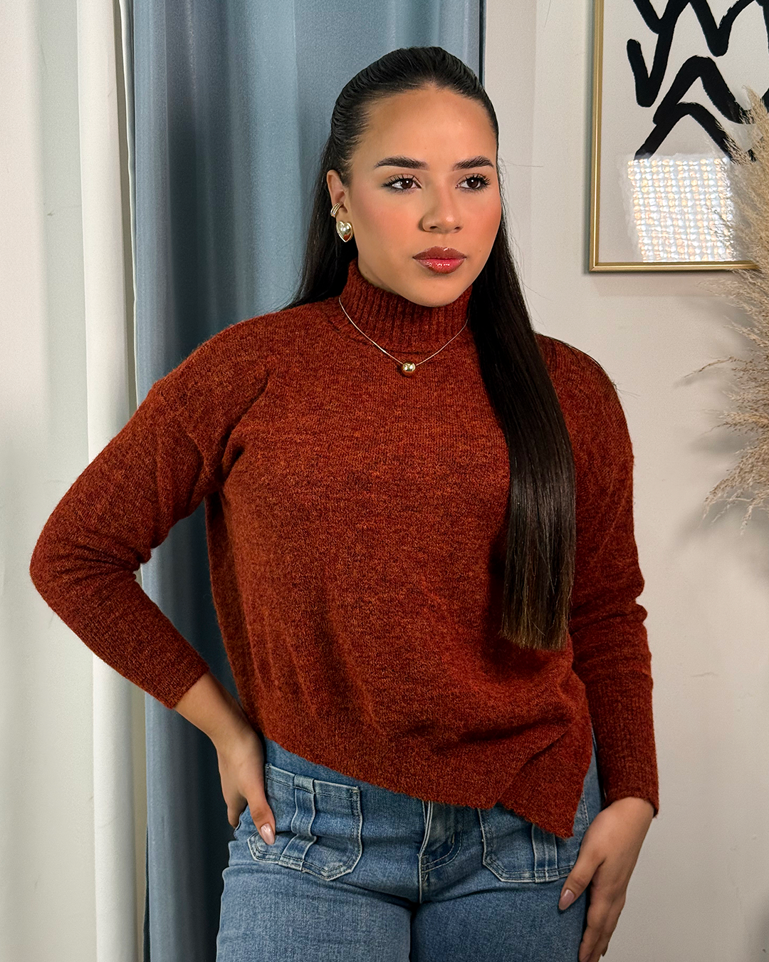 Este suéter tejido con corte asimétrico combina estilo contemporáneo y comodidad. Su diseño único aporta un toque moderno y vanguardista a cualquier outfit, mientras que la calidad del tejido asegura durabilidad y una sensación agradable al tacto. Ideal para quienes buscan una prenda versátil que destaque por su forma innovadora y ajuste favorecedor.