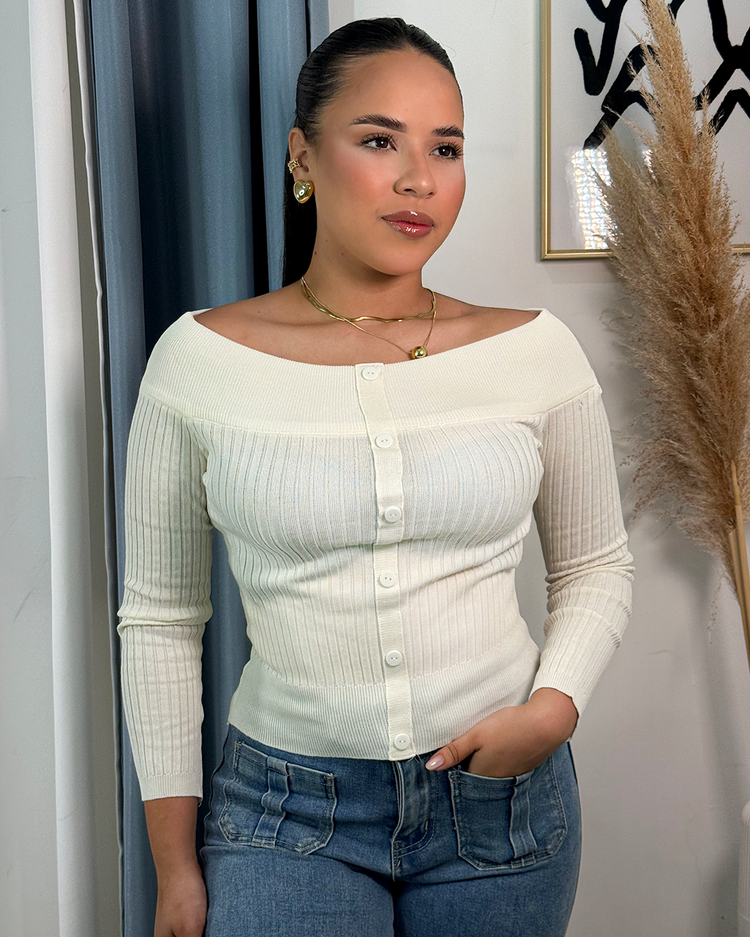 Este suéter tejido unicolor con hombros al aire combina estilo y comodidad para un look moderno y fresco. Su diseño abierto en los hombros aporta un toque sensual y elegante, ideal para destacar en cualquier ocasión. Perfecto para quienes buscan una prenda versátil que se adapte tanto a días casuales como a salidas especiales. Añade un toque de sofisticación a tu guardarropa con este suéter único y cómodo.